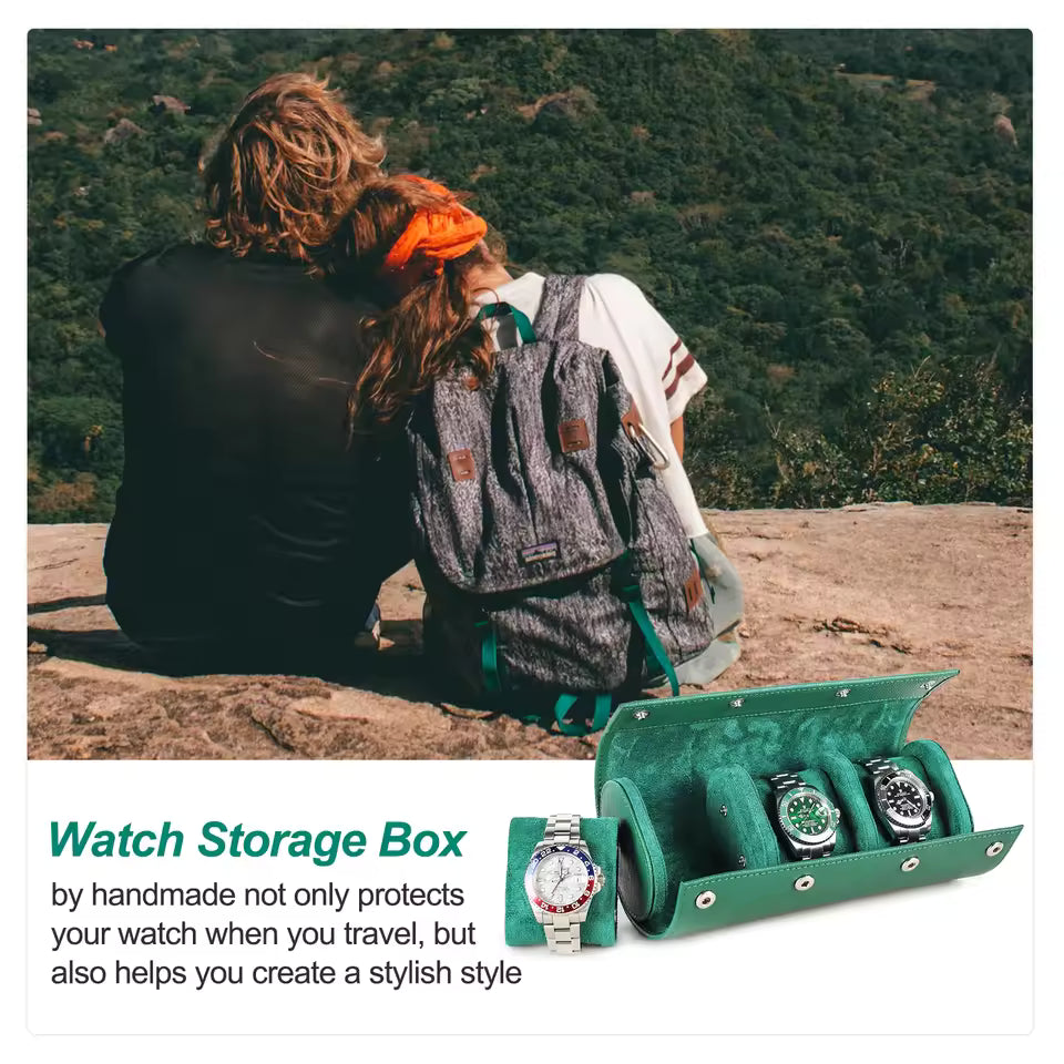3-Slot Genuine Saffiano Leather Watch Roll Case - Luxury Portable Watch Organizer
