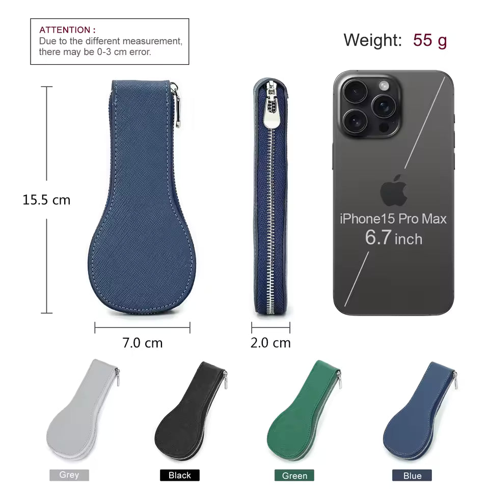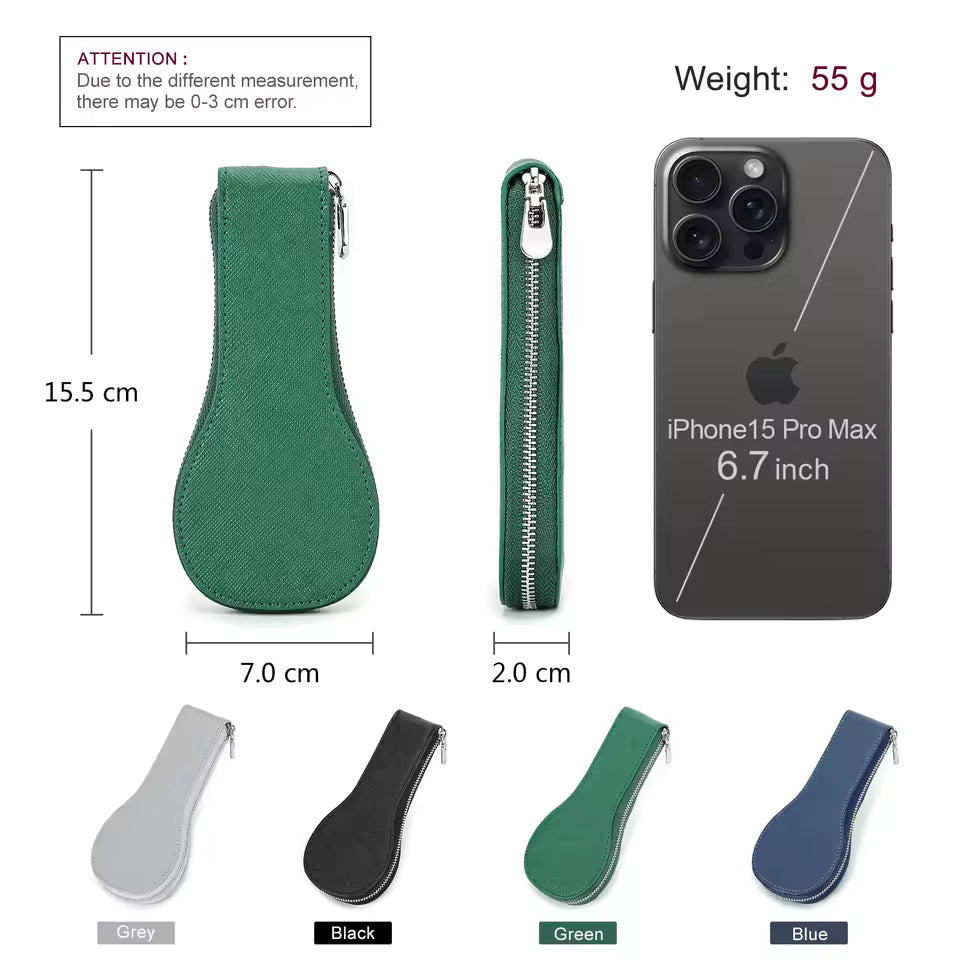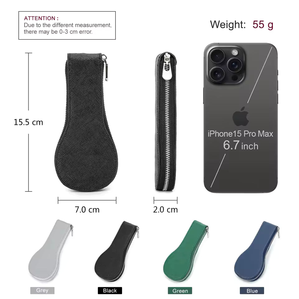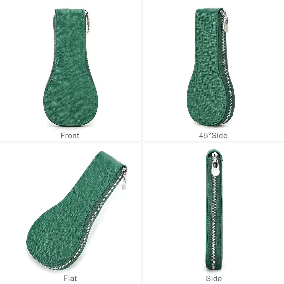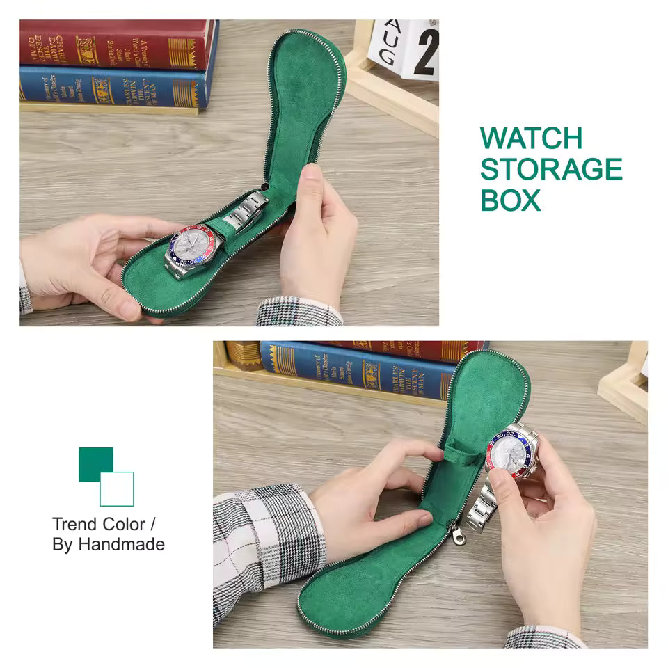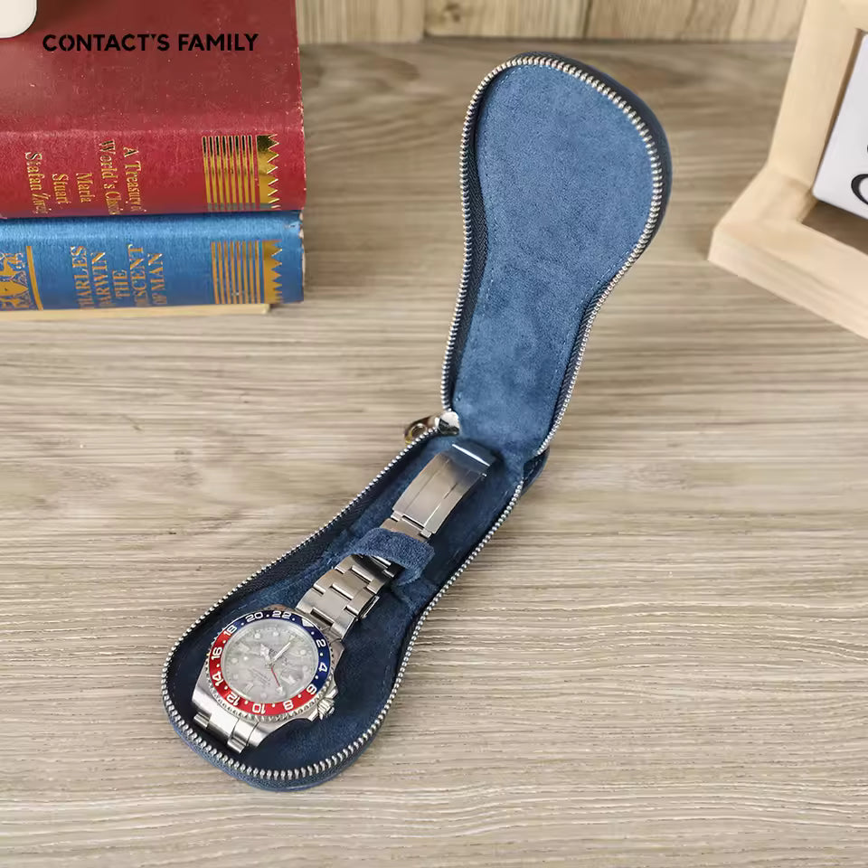 Genuine Saffiano Leather Single Slot Watch Case with Zipper - Portable Travel Watch Organizer