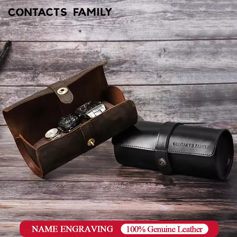 Genuine Leather 3-Slot Watch Roll Case - Portable Watch Holder Gift for Men & Women