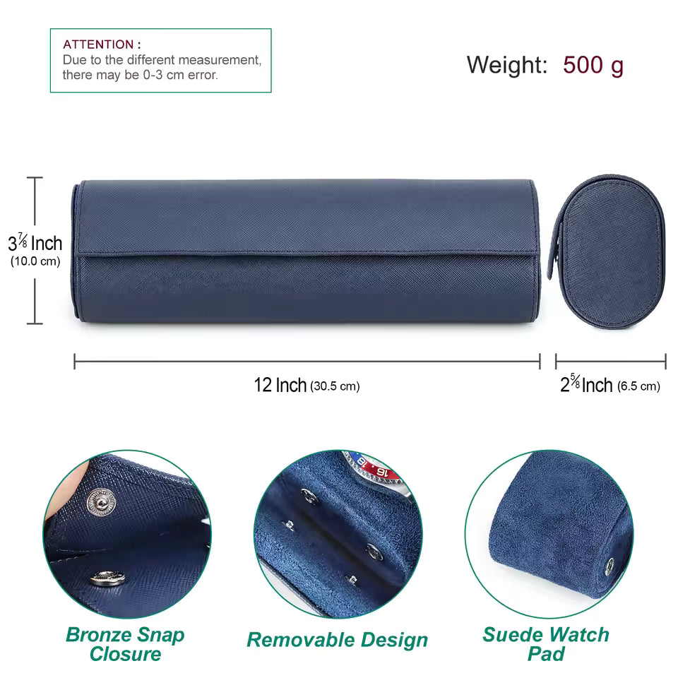 Saffiano Genuine Leather 1/2/3/4 Slots Watch Roll Case - Travel Portable Watch Case